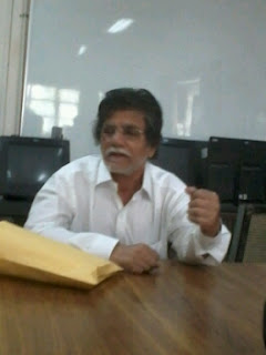 | اسٹیج پر بیٹحے شعراء اور اپنا کلام سناتے آلوک شریواستو{غالبا} |